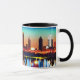 Coffee mug in an illustration of the Atlanta Georgia skyline at night, under a starry sky, with brilliantly reflected lights