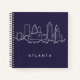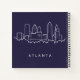 This design features a hand drawn sketch of the Atlanta skyline on a purple background.