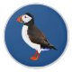 A digital painting of an Atlantic Puffin on a blue background.You may choose another background colour. The Atlantic Puffin (Fratercula arctica) feeds primarily by diving in the water. They breed in large colonies on coastal cliffs or offshore islands in the North Atlantic. Puffins shed the colourful outer parts of their bills after the breeding season, leaving a smaller and duller beak. Their short wings are adapted for swimming with a flying technique under water. In the air, they beat their wings rapidly (up to 400 times per minute) in swift flight, often flying low over the ocean's surface.