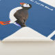 The Atlantic Puffin (Fratercula arctica) feeds primarily by diving in the water. They breed in large colonies on coastal cliffs or offshore islands in the North Atlantic. They shed the colourful outer parts of their bills after the breeding season, leaving a smaller and duller beak. Their short wings are adapted for swimming with a flying technique under water. In the air, they beat their wings rapidly (up to 400 times per minute) in swift flight, often flying low over the ocean's surface.