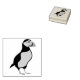 A cute Atlantic Puffin standing illustrated from the side view. The head of this pretty bird is turn to show off its beak marking.