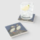 The coasters are gorgeous, a quality feel and heavy weight. They look like a precious archeological find. A rustic stone juxtaposed with a modern floral black and white print. I like the way the print goes slightly imperfect on the cut stone edges giving them a kind-of natural beauty.