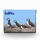Puffins at rest on the rocks. Customisable text reading "Puffins" also appears.