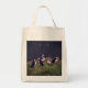 The printing came out very well, better than I had anticipated. The natural color fabric is sturdy with strong seams and comfortable handles. This tote fits easily over my shoulder. As it is filled, the bottom flattens out--very cool! I would buy this product again. This grocery tote holds a lot of groceries! The image quality was very good. The colors were a little darker than I had expected. The darkness may have been due to printing on a natural color fabric rather than on white. The cat design is attractively centered on the tote. The spirit of the design is very lively, just as it appears on the Zazzle website.