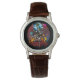 I like the illustrative watch with the lady on it. It is a great reminder that I am blessed and it has a very sturdy leather band. The colors are true and vibrant. Love the color of the Leather also. Very nice.