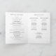This folded card program features a favourite photograph as the cover background beneath name, date and location text. The inside pages allow for both an extensive ceremony program as well as a list of all bridal party members and additional personnel involved in the ceremony. Finally, the back of the card have text perfect for a final note of gratitude to guests and a place to remember the names of family and friends that are no longer there to celebrate.