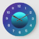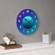 A simplistic and atmospheric wall clock in aqua blue. A round moonlike centre defines this design. White numerals with a choice of black or silver clock hands.