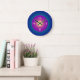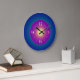 An atmospheric clock which features a background of bluegreen with a purple lemon centre. Lemon numerals complete this design. Available in round and square shapes.