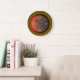 An atmospheric wall clock in warm moss green with lighting effects in red! This clock design also features numerals in lemon yellow !