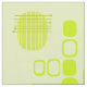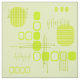 A mid century modern abstract art design that would have fit right in during the 1950s. Various shapes of oval circles and lines in chartreuse or bright tennis ball yellow.