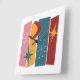 Make a statement on your wall with this bold atomic era mid century square wall clock. With its pink, orange, blue, and red rectangles, stars, and boomerang it’s sure to get a few “wows”!