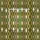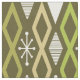 A retro 1950s art pattern with geometric hollow diamonds and atomic era style stars. Multicolored colours include yellow-green, chartreuse green, tan, and beige.