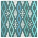 A retro 1950s art pattern with geometric hollow diamonds and atomic era style stars. Multicolored colours include teal, turquoise, aquamarine, and ocean green.