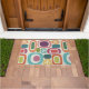 This mid century modern abstract art has geometric designs popular in the 1950s, with wonky rocks in various shapes and sizes. Bright and colourful rainbow colours.