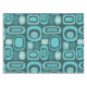 This mid century modern abstract art has geometric designs popular in the 1950s, with wonky rocks in various shapes and sizes. Teal, turquoise, aquamarine, blue-green.