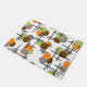 A retro atomic era inspired pattern with brown, orange, grey and chartreuse molecule circles, along with mid century modern styled bold lines.
