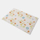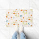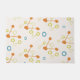 This atomic era-inspired abstract pattern has lines and circles connecting. The colour scheme is chartreuse green, bright orange, burnt orange and turquoise blue.