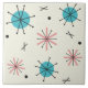 An abstract mid century modern art design resembling a sky with planets and sputnik starbursts. A great gift idea for anyone who loves 1950s space age patterns.