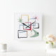 Add that splash of fun and colour to your wall with this fabulous atomic era mid century modern square wall clock! This design features abstract squares, starbursts, and a boomerang in the colours of red, green, blue, yellow, and black...so funky!