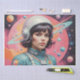A futuristic depiction of a woman adorned with sleek, retro-style helmet, immersed in a vibrant fuchsia backdrop. This design embraces the Atomic Age aesthetic, featuring bold mid-century influences and abstract space-inspired elements. The composition captures the era’s spirit of innovation, blending cosmic wonder with a stylish, forward-thinking vibe