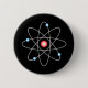 Black button pin with multicolor atom graphic.