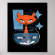Atomic Cat with Fish Bowl Mid Century Modern Poster