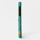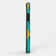 This iPhone case has a mid-century modern atomic design of diamonds, and starbursts on a field of turquoise.