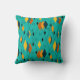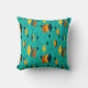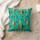 This throw pillow has a mid-century modern atomic design of diamonds, and starbursts on a field of turquoise.