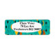 These return address labels have a mid-century modern atomic design of diamonds, and starbursts on a field of turquoise.