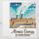 Atomic Energy "for Your Home" retro 1950s style green energy cartoon with a nuclear power station.