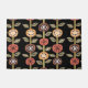This retro mid century modern inspired abstract art from the 1950’s, with flowers on stalks with lines and dots. Desaturated green, yellow, brown and red against a black background.