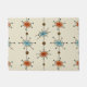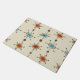 A vintage styled mid century modern abstract art pattern with retro sputnik starbursts in burnt orange and sky blue.
