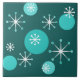 A mid century modern inspired space age 1950s pattern with geometric sputnik starbursts. The colour palette is teal green and turquoise blue
