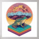 "Atomic Frog" presents a whimsical yet powerful image of a frog perched atop a platform with a vibrant mushroom cloud in the background. This unique poster combines elements of nature and atomic energy in a surreal, colourful display. The design file is also available for instant download.