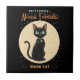 Atomic Futuristic Black Cat Moon with text Ceramic Tile