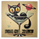 Atomic Futuristic Space Age Black Cat Martini Ceramic Tile