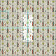 My original vector illustration of retro Atomic Kitty Rockets, satellites, moons, atoms, starbursts, galaxies, pulsars, sound waves, and shooting stars, in off white, tan, gold, aquamarine, dark orange, black and a hint of pink.