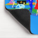 This Atomic Palm Springs Cocktail Party Mousepad is kitschy sophistication at its most fabulous! The 1960s style, minimalist art design features a mid-century modern stone fireplace in a shade of blue that coordinates perfectly with the bright cobalt of the rest of the living room. You can see a spectacular view of the tropical backyard through the sliding glass doors. The room is decorated in the height of space-age fashion, complete with modern art, cone wall sconces, two-tiered orange side table, and an olive green striped rug. The glamourous men and women are sipping their orange martinis. The man in the bright blue suit with a bow tie is livening things up by taking the fiberglass shade off the lamp and placing it on his head to the amusement of the other guests. Now, it's a party!