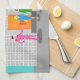 You are invited to the social event of the year with this Atomic Palm Springs Stewardess Party kitchen towels design. Join these three vintage flight attendants from rivaling airlines as they check into their kitschy 1960s breezy block hotel. One of the fabulously hunky bellhops in a retro hot pink uniform holds the orange door while the other struggles with the women's luggage. Teal palm trees sway in the background of the impossibly turquoise sky as a jetliner flies overhead. This design will have you saying, “On your mark, jet set, go!”