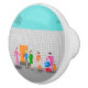 You are invited to the social event of the year with this Atomic Palm Springs Stewardess Party ceramic pull design. Join these three vintage flight attendants from rivaling airlines as they check into their kitschy 1960s breezy block hotel. One of the fabulously hunky bellhops in a retro hot pink uniform holds the orange door while the other struggles with the women's luggage. Teal palm trees sway in the background of the impossibly turquoise sky as a jetliner flies overhead. This design will have you saying, “On your mark, jet set, go!”