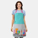 You are invited to the social event of the year with this Atomic Palm Springs Stewardess Party all-over print apron design. Join these three vintage flight attendants from rivaling airlines as they check into their kitschy 1960s breezy block hotel. One of the fabulously hunky bellhops in a retro hot pink uniform holds the orange door while the other struggles with the women's luggage. Teal palm trees sway in the background of the impossibly turquoise sky as a jetliner flies overhead. This design will have you saying, “On your mark, jet set, go!”