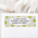These return address labels have a mid-century modern design of tan arches repeating on white as a background with repeating green-gold circles with darker green-gold starbursts inside them.