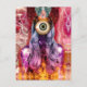 Beautiful, whimsical, surreal and trippy collage of a strange, otherworldly female entity in rainbow colours.