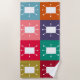 This beach towel has a mid-century modern design of squares with rounded rectangles with antenna in mid-century modern colours. Want the same design in different colours? Message me.