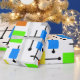 This wrapping paper is covered with a mid-century modern design of a variety of retro rectangles connected together. Colourful and fun!
