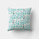 This throw pillow features repeating patterns of mid-century style atomic cat graphics in teal. This pattern is found on other products in my store too.