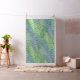 A modern take on mid-century modern : overlapping atomic shapes overlaying a digital crosshatch in bright greens and fresh blues.
