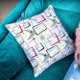 Add a pop of colour to your sofa or bed with this funky retro throw pillow. The pattern features abstract squares, starbursts, and a boomerang in the colours of red, green, blue, yellow, and black. This will liven up your decor!