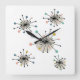 Atomic Starburst Mid Century Modern Colourful Square Wall Clock