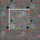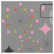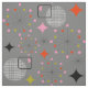 Stylish on trend pattern inspired by retro modern mid century designs with atomic starbursts and funky shapes in tones of orange, pink, green, grey, black and white.